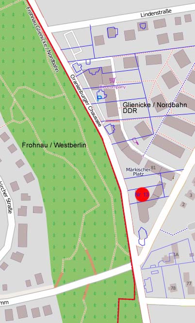 Mauerverlauf und Beckersches Grundstück sind rot markiert.
