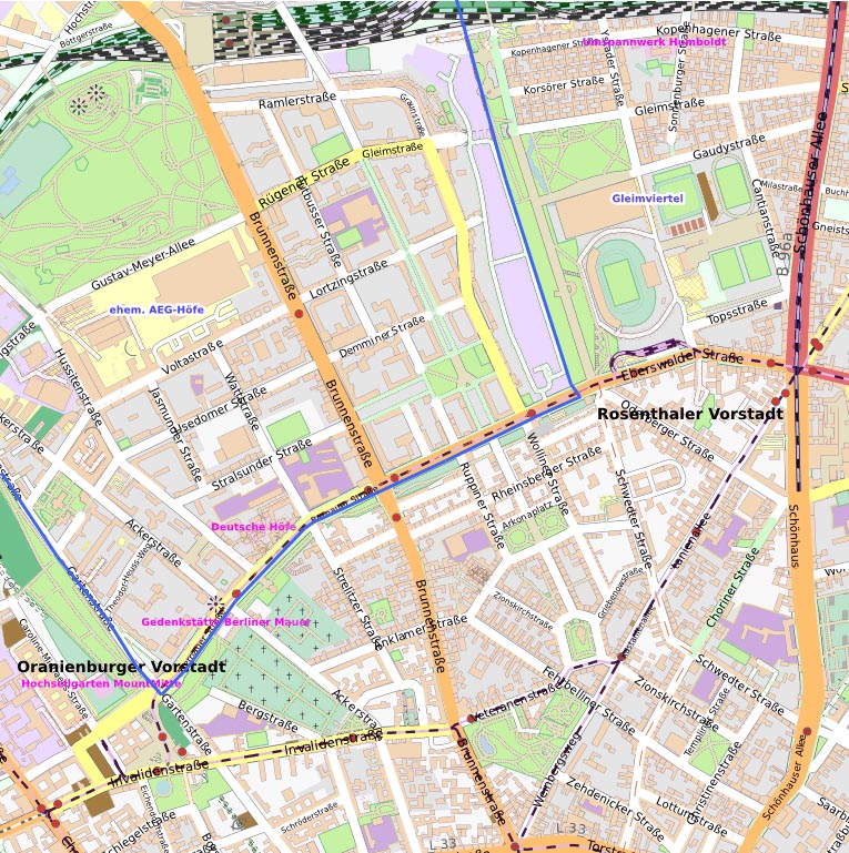 Str. gebaut, bricht aber bei der Querung der Schwedter Str. ein.