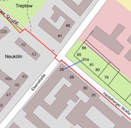 Am 6.6.1962 beginnt die Gruppe um Wagner und Seidel im Keller der Gaststätte Heidelberger Krug mit einem Tunnelbau. Der Heidelberger Krug ist eine typische Eckkneipe an der Kreuzung Heidelberger Straße und Elsenstraße; die Situation Anfang der 1960er Jahre ist auf zwei Fotos des Landesarchivs Berlin gut zu sehen (siehe die links am rechten Rand).